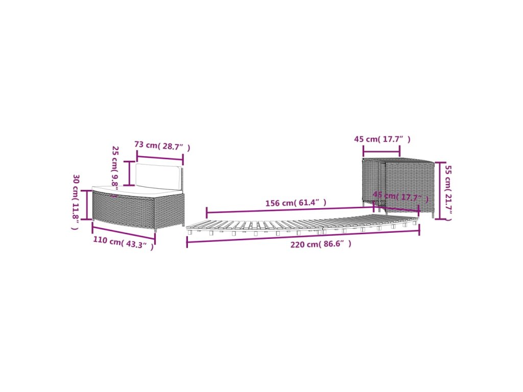 - Rozmery (každý kus): 78/110 x 45 x 7 cm (D x Š x V)