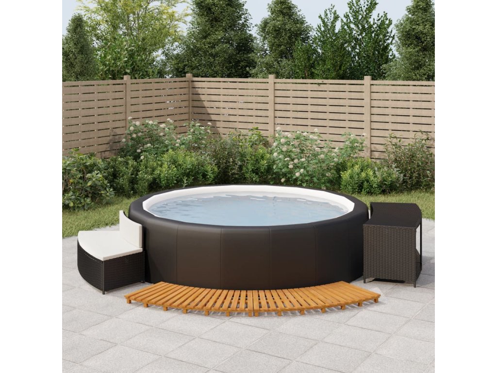 - Masívne akáciové drevo: Schodíky k vírivke sú vyrobené z masívneho akáciového dreva. Masívne akáciové drevo je krásny prírodný materiál. Akáciové drevo je drevo tropického listnatého stromu, ktoré je husté, pevné a trvácne.