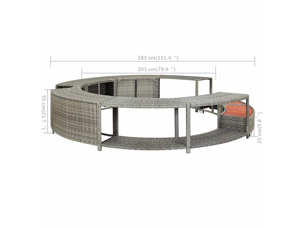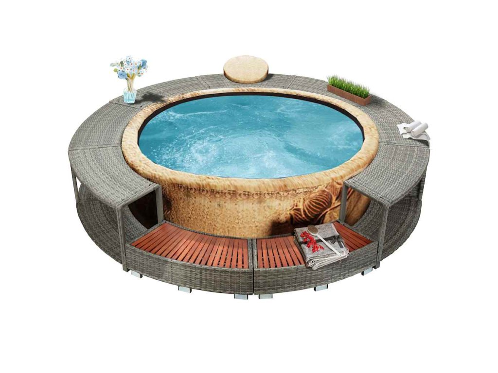 Štýlový polyratanový dekoratívny rám predstavuje všestranný doplnok k vírivke. Dodáva jej elegantný a moderný vzhľad, a zároveň vytvára praktickejšie a pohodlnejšie prostredie v okolí vírívky.