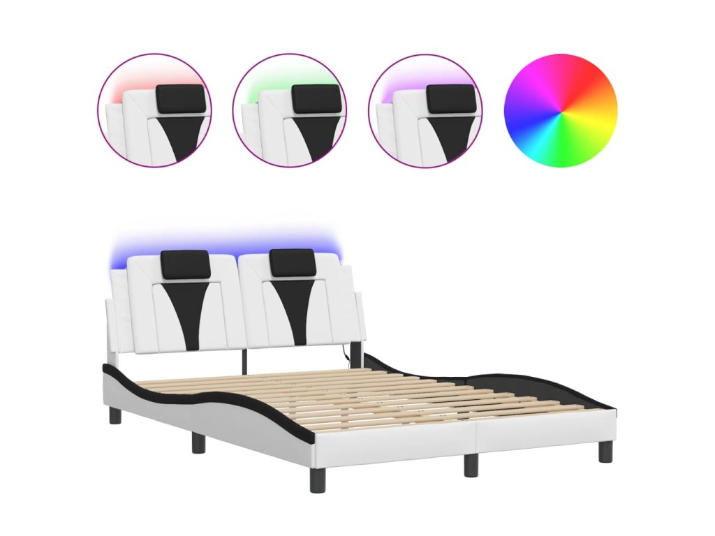 Multidom Rám postele, Viana, s LED bez matraca, bielo čierny 140x190cm