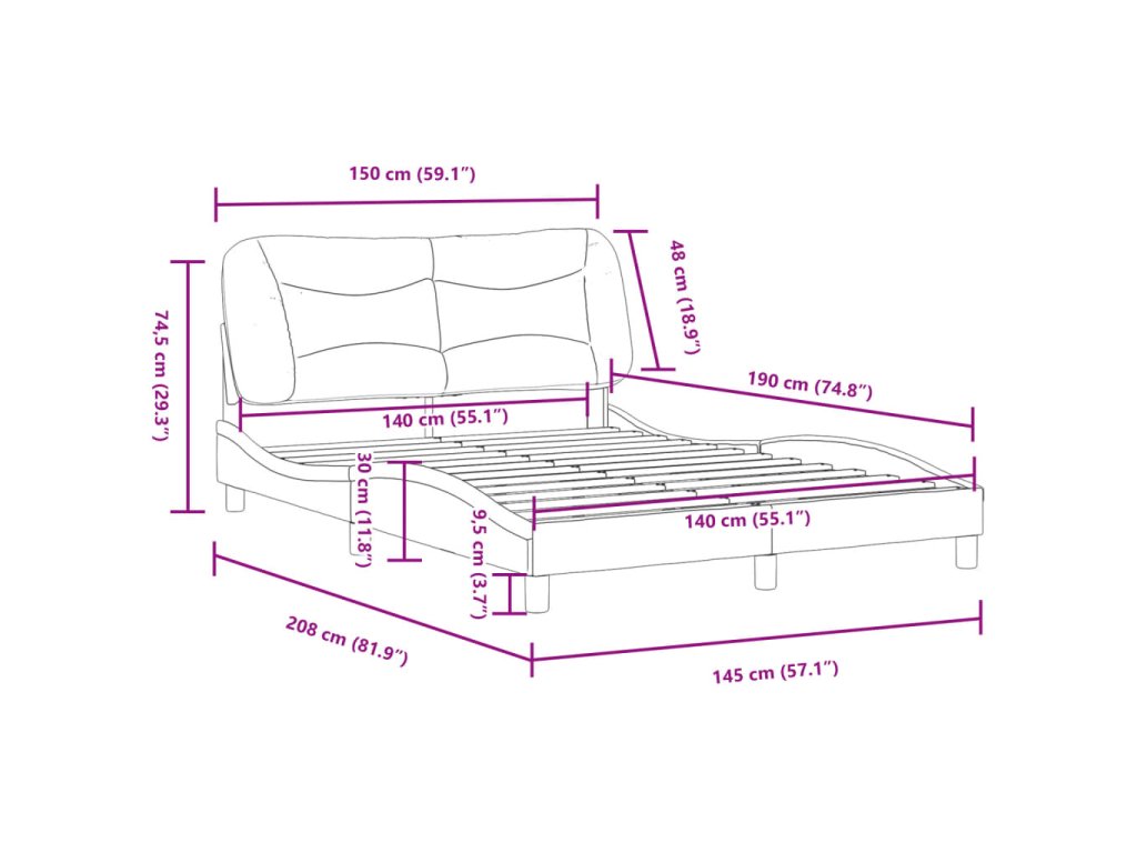- Vhodná veľkosť matraca: 140 x 190 cm (Š x D) (matrac nie je súčasťou balenia)