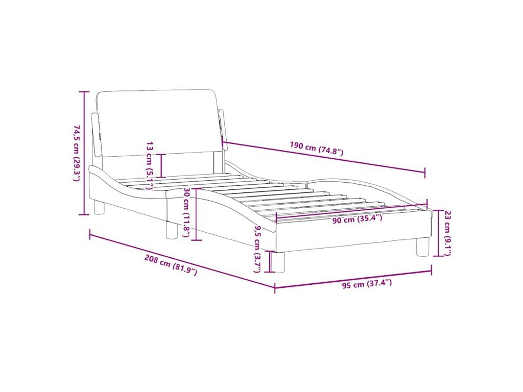 - Vhodná veľkosť matraca: 90 x 190 cm (Š x D) (matrac nie je súčasťou balenia)