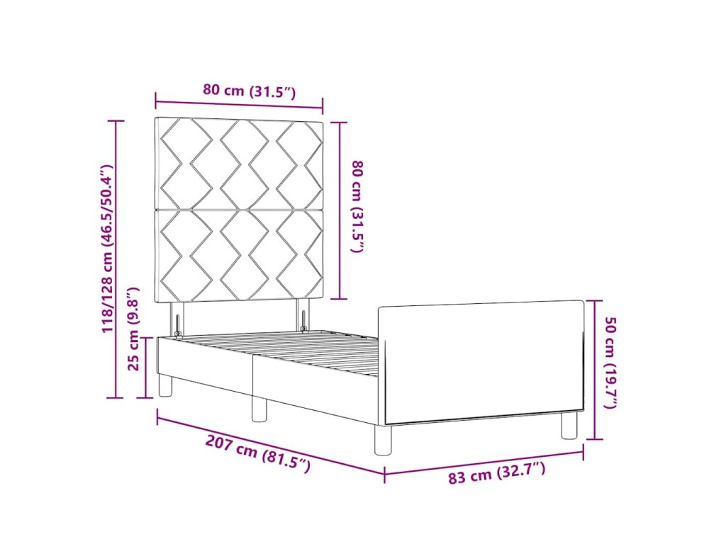 Multidom Rám postele s čelnou doskou Tmavo šedá 80 x 200 cm látka