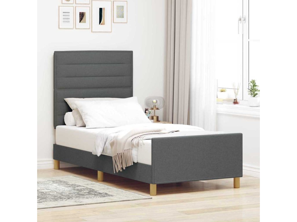 Multidom Rám postele s čelnou doskou Tmavo šedá 90 x 190 cm látka