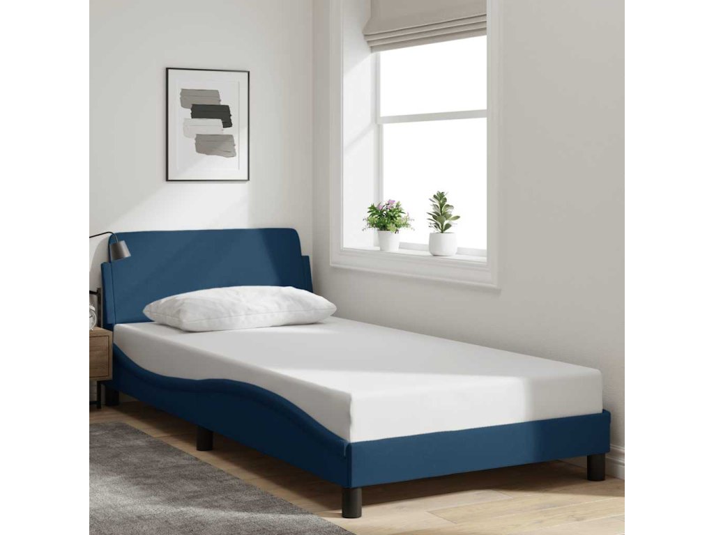 Multidom Rám postele s čelom Dover modrý 100x200 cm látka
