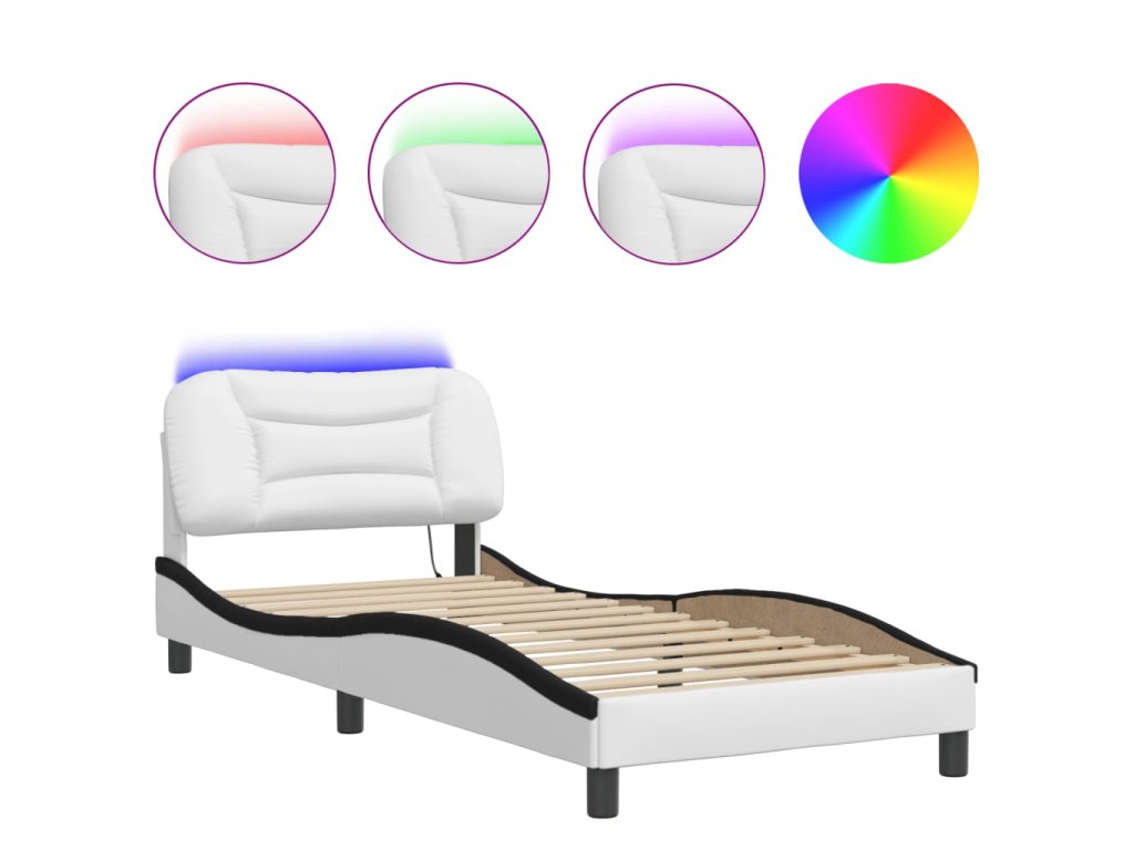 Multidom Rám postele s LED bez matraca, Hvar, bielo čierny 90x190 cm