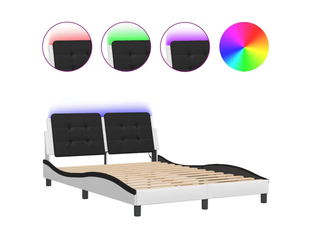 Multidom Rám postele s LED bez matraca, Zadar, bielo čierny 120x200cm