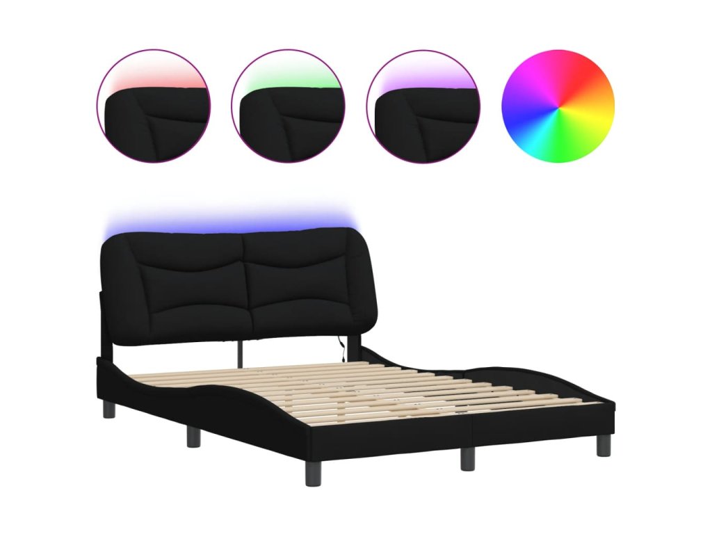 Multidom Rám postele s LED bez matraca Hvar čierna 140x190 cm látka
