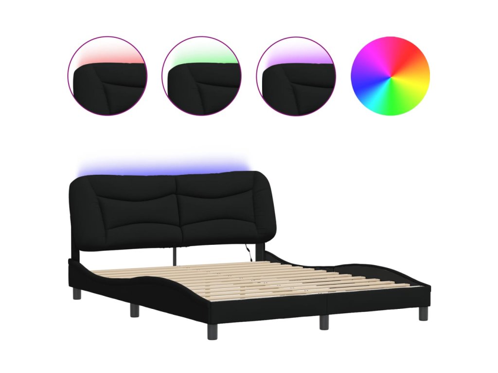 Multidom Rám postele s LED bez matraca Hvar čierny 160x200 cm látka