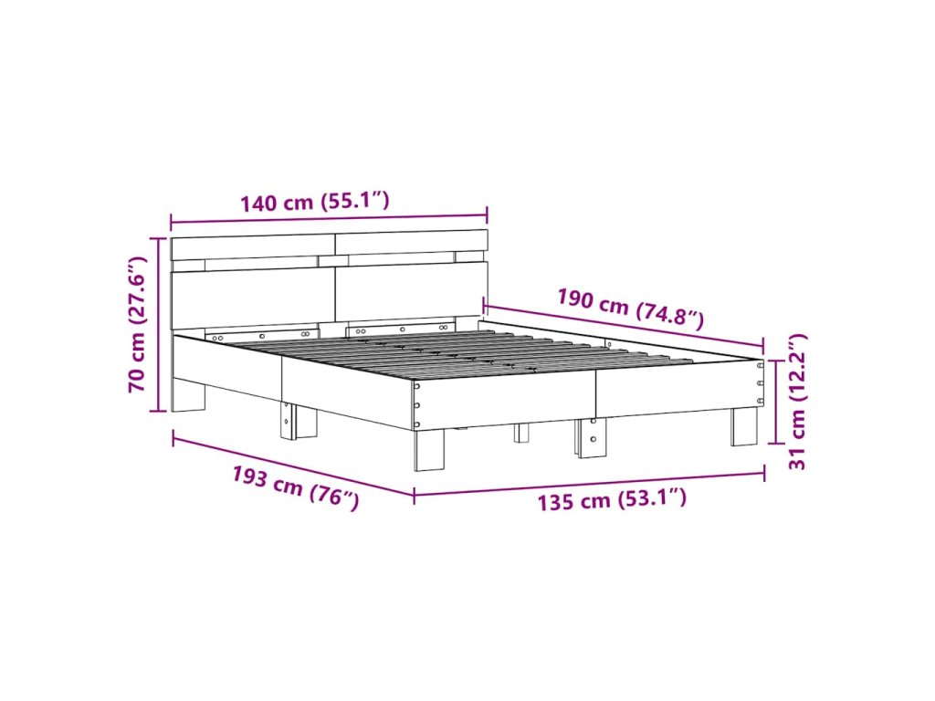 • Konštrukcia z inžinierskeho dreva Rám postele má pevnú zostavu z inžinierskeho dreva, známeho svojou odolnosťou a eleganciou. Odoláva opotrebeniu a ostáva dôležitým článkom vo vašom dome roky, pričom si zachováva svoj štýlový vzhľad.