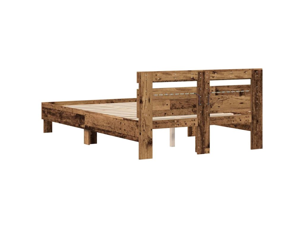 Multidom Rám postele s LED Staré drevo 135 x 190 cm Kompozitné drevo