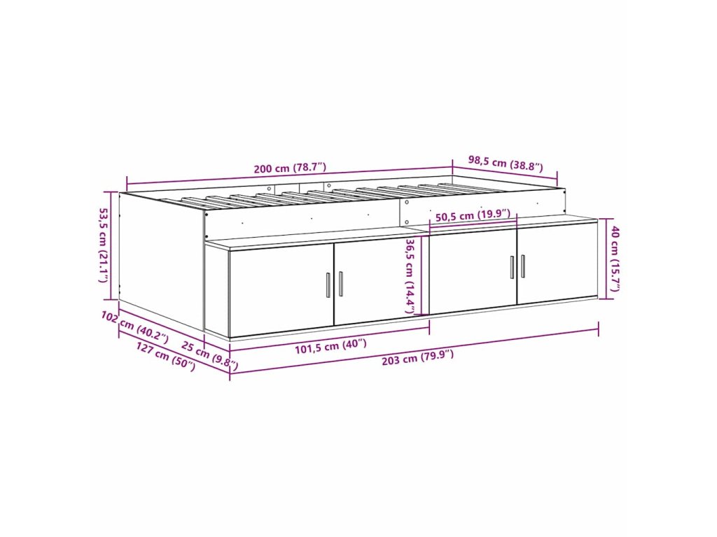 - Celkové rozmery: 203 x 127 x 53,5 cm (D x Š x V)