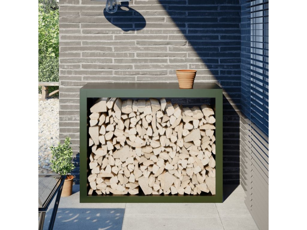 Multidom Regál na krbové drevo, zelený 100x40x80 cm, oceľ