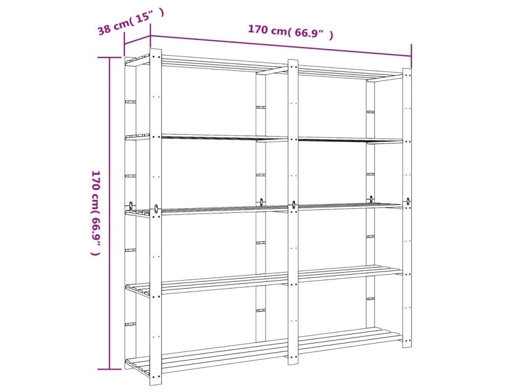 Multidom Regál s 5 policami čierny 170x38x170 cm borovicový masív