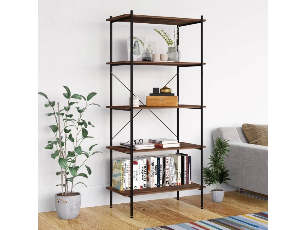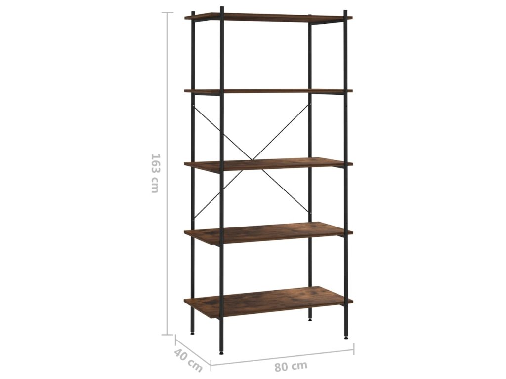 Multidom Regál so 4 policami, čierny a prírodný 80x40x163 cm