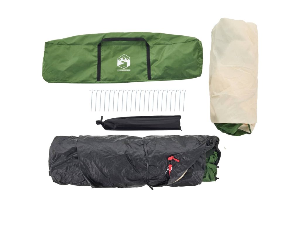 - Vodotesný dizajn: Tento kempingový stan je vyrobený z polyesteru s PU vrstvou, takže je vodeodolný a odolný voči vetru. Podlepené švy účinne zabraňujú prenikaniu dažďovej vody, zatiaľ čo odolná podlážka pomáha udržiavať interiér suchý a pohodlný.