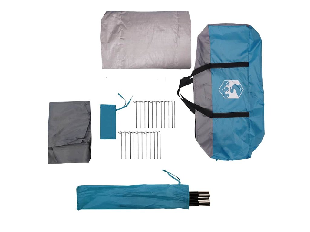 - Vodotesný dizajn: Tento kempingový stan je vyrobený z polyesteru s PU vrstvou, takže je vodeodolný a odolný voči vetru. Podlepené švy účinne zabraňujú prenikaniu dažďovej vody, zatiaľ čo odolná podlážka pomáha udržiavať interiér suchý a pohodlný.