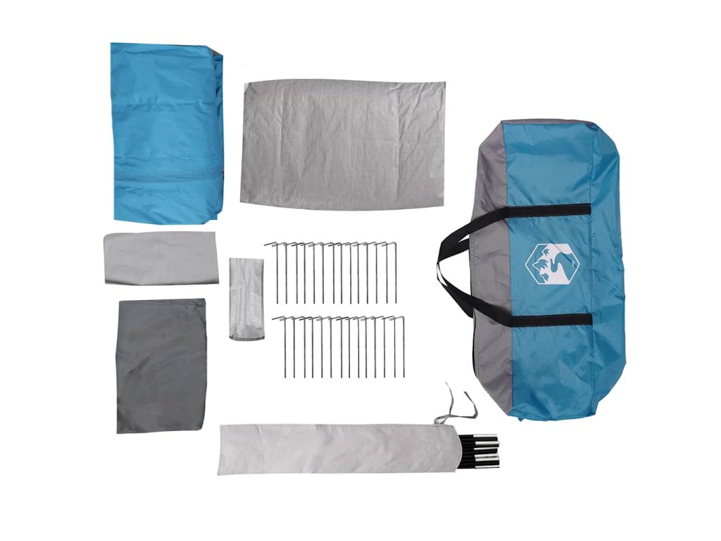 - Súčasťou balenia sú aj tyče na striešku: Tento kempingový stan obsahuje tyče, vďaka ktorým je jednoduché podoprieť vchodové dvere a vytvoriť slnečnú striešku. Odteraz si budete môcť vychutnávať pobyt na čerstvom vzduchu a zároveň zostať v tieni!