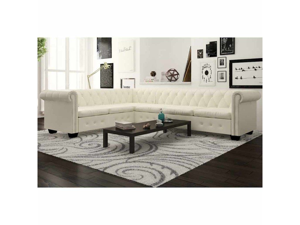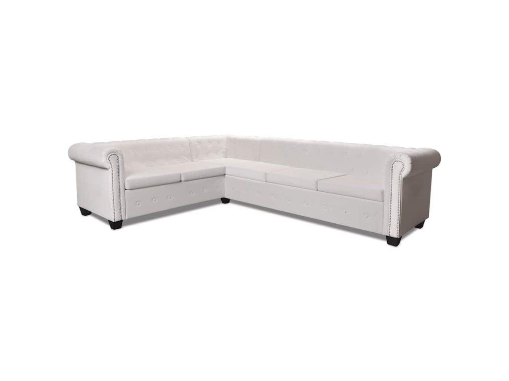 Multidom Rohová pohovka Chesterfield, 6-miestna, umelá koža, biela