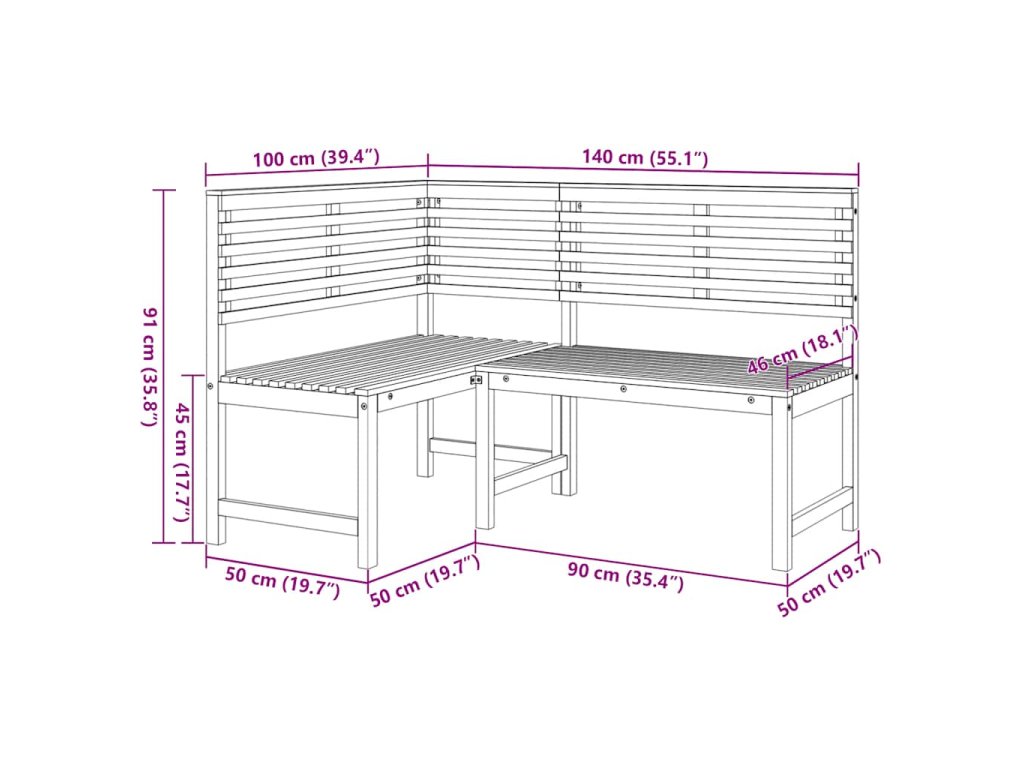 Multidom Rohová záhradná lavička 140 cm akáciový masív
