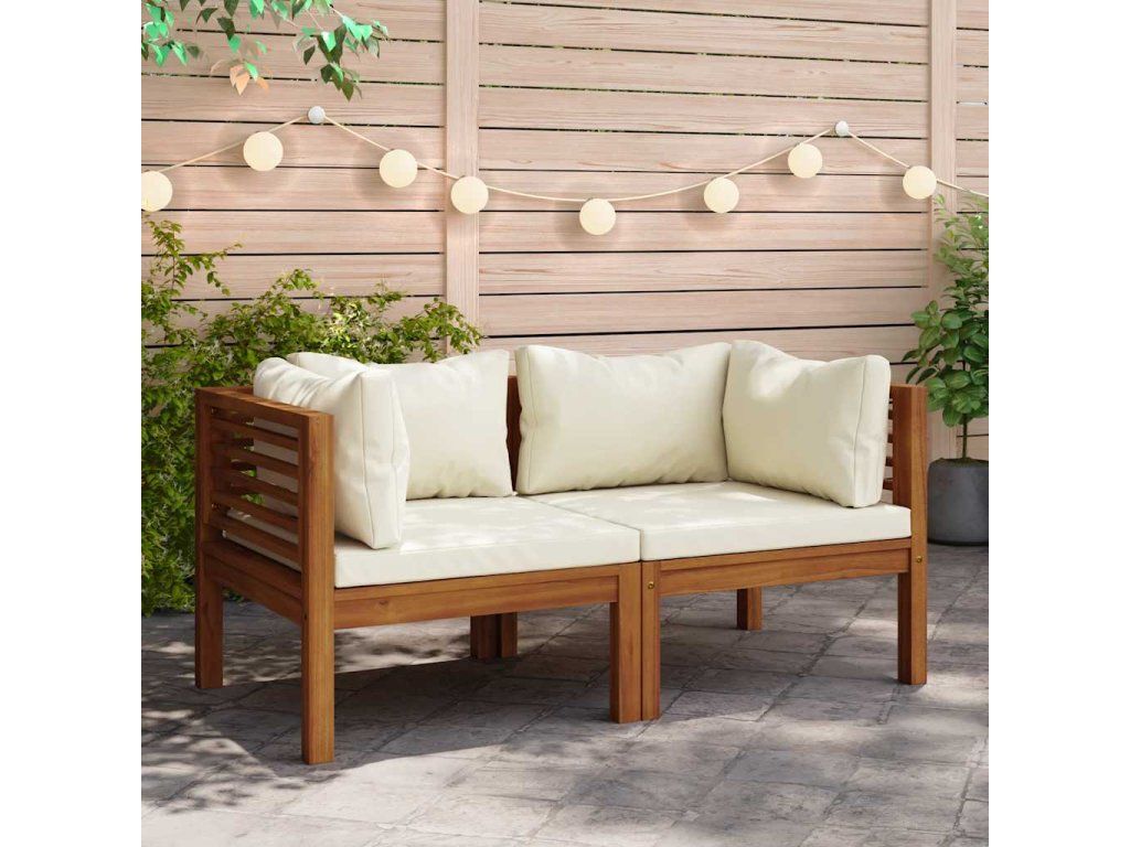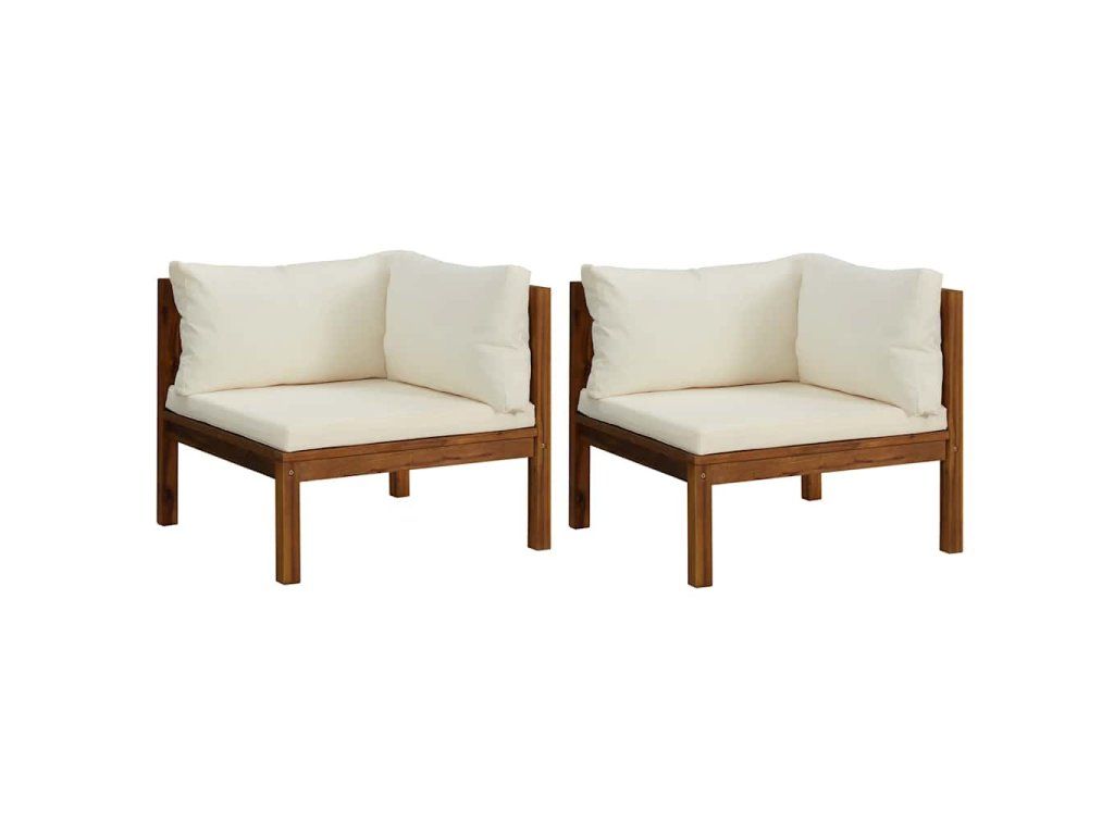 Multidom Rohové pohovky 2 ks s krémovo-bielymi vankúšmi akáciový masív