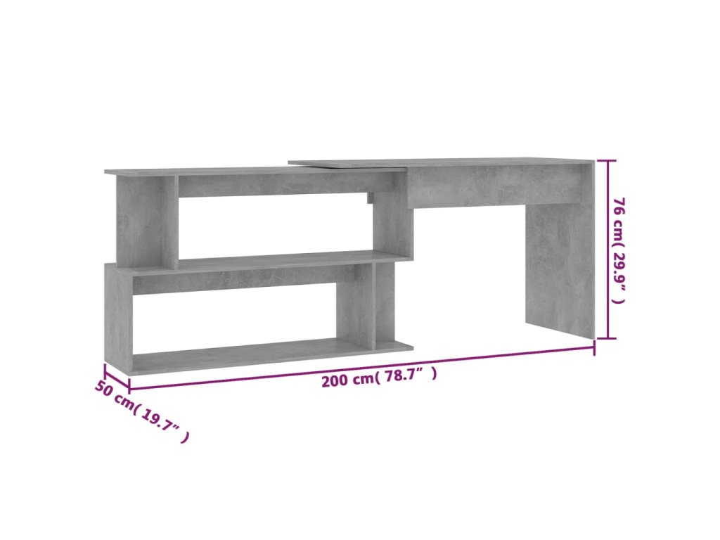 Multidom Rohový stôl, betónovo sivý 200x50x76 cm, kompozitné drevo