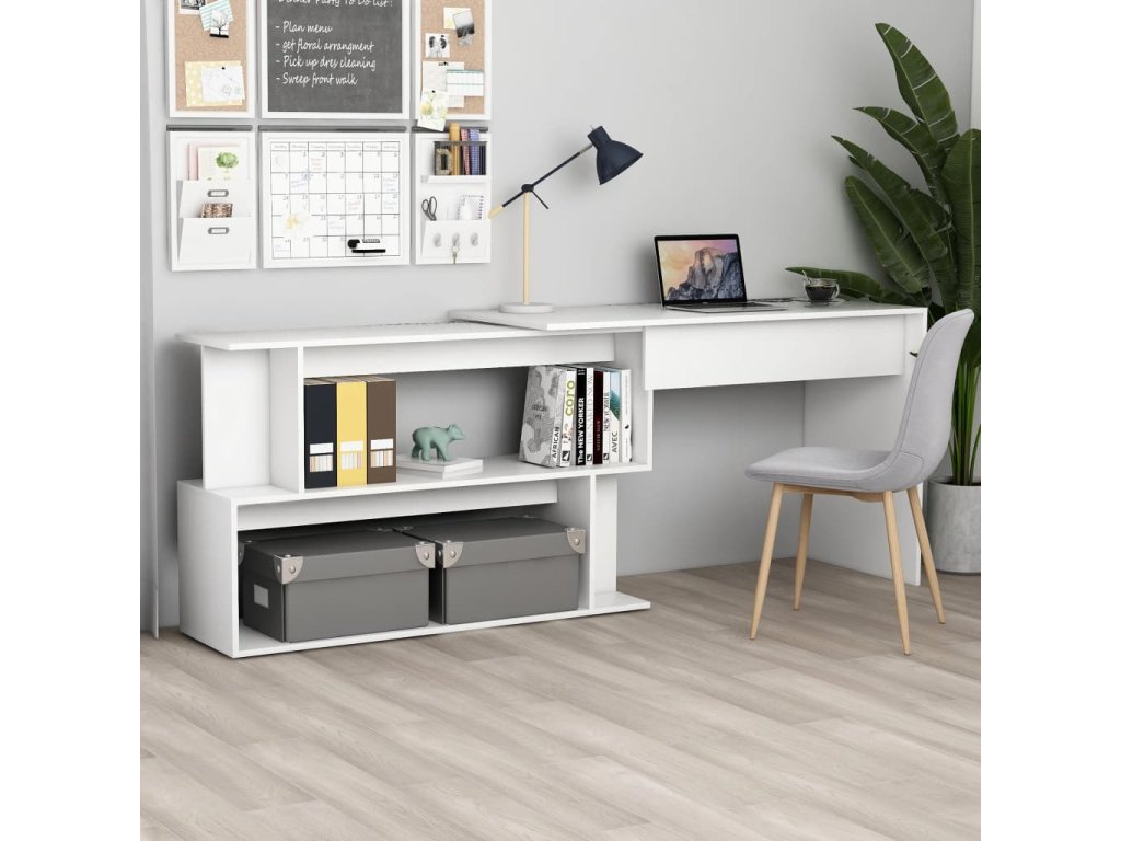 Multidom Rohový stôl, biely 200x50x76 cm, kompozitné drevo