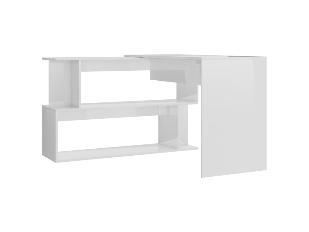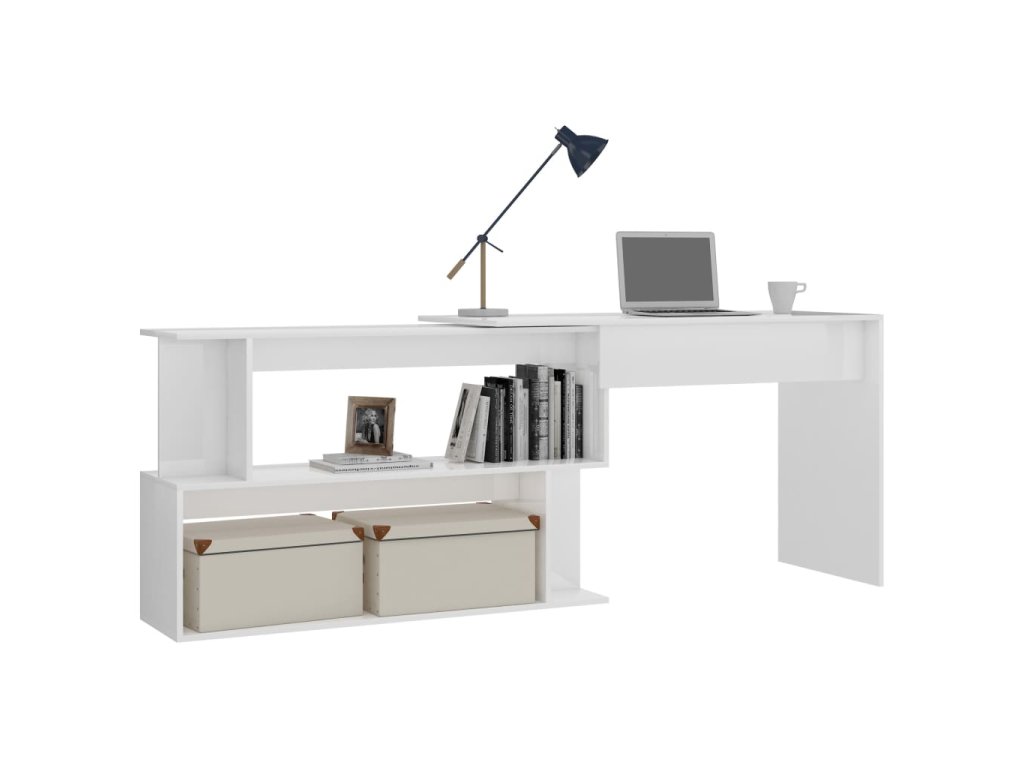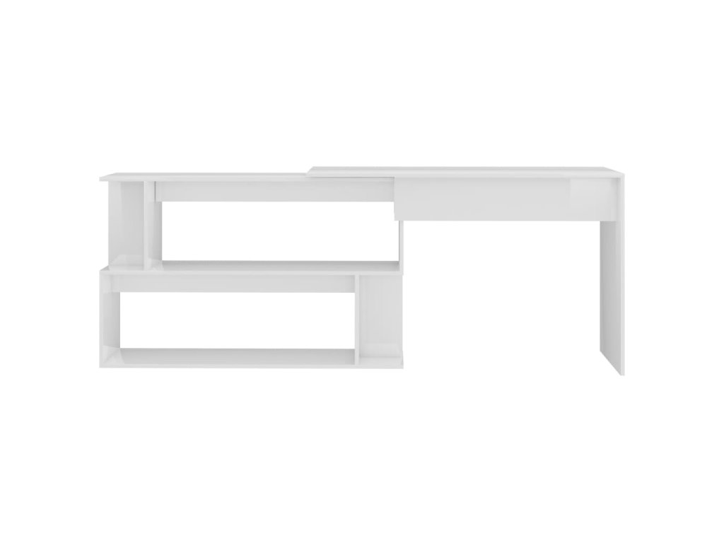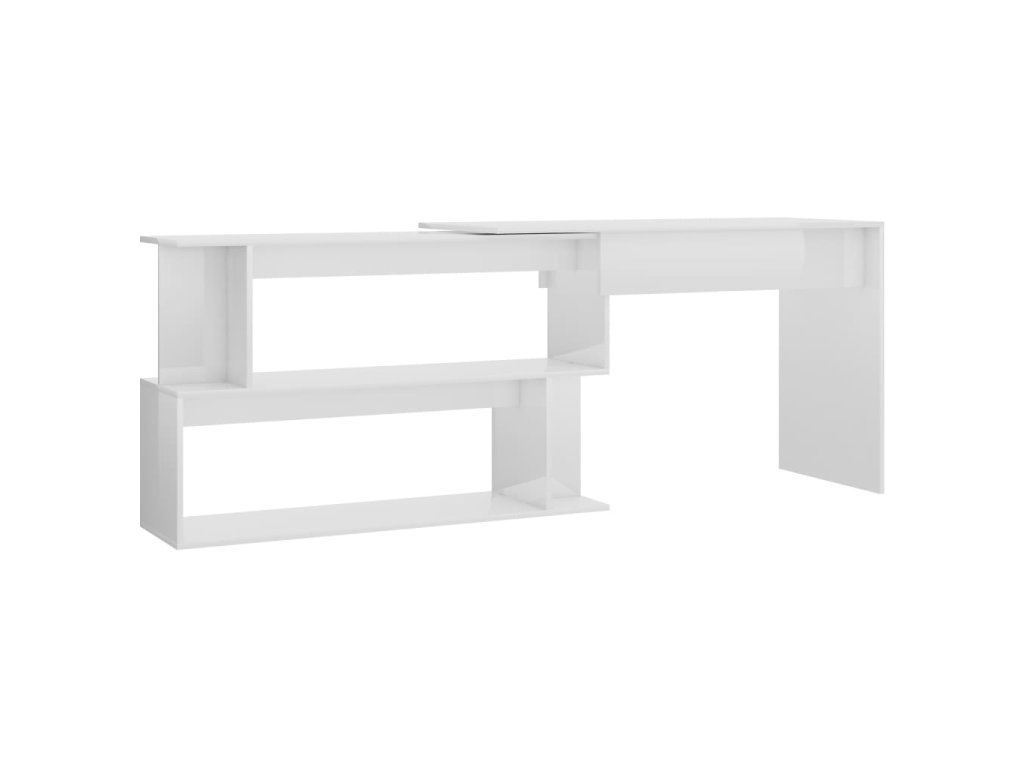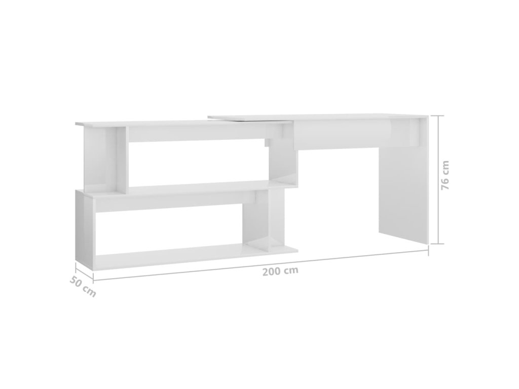 Multidom Rohový stôl, lesklý biely 200x50x76 cm, kompozitné drevo