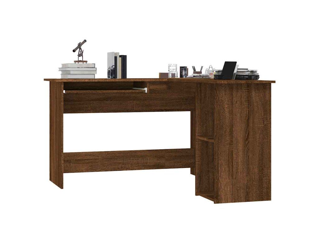 Tento moderný rohový písací stôl v tvare L, navrhnutý s posuvnou klávesnicou a 2 otvorenými policami, je veľmi praktický a bude vhodným doplnkom vašej pracovne alebo študovne!