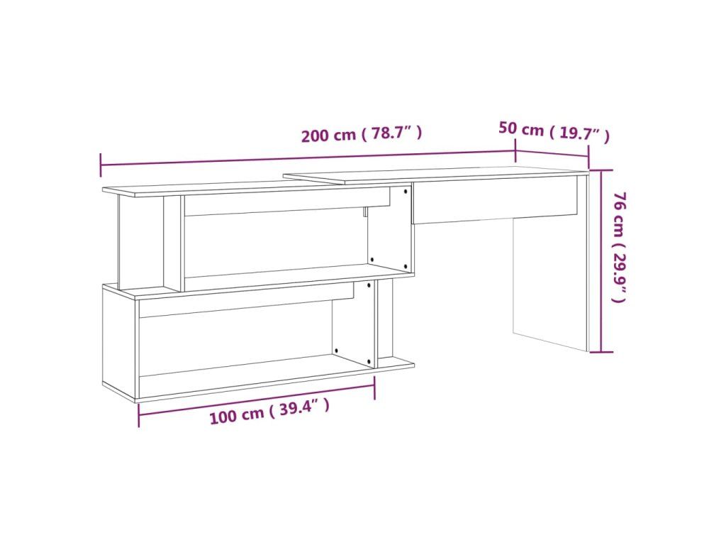Multidom Rohový stôl hnedý dub 200x50x76 cm spracované drevo