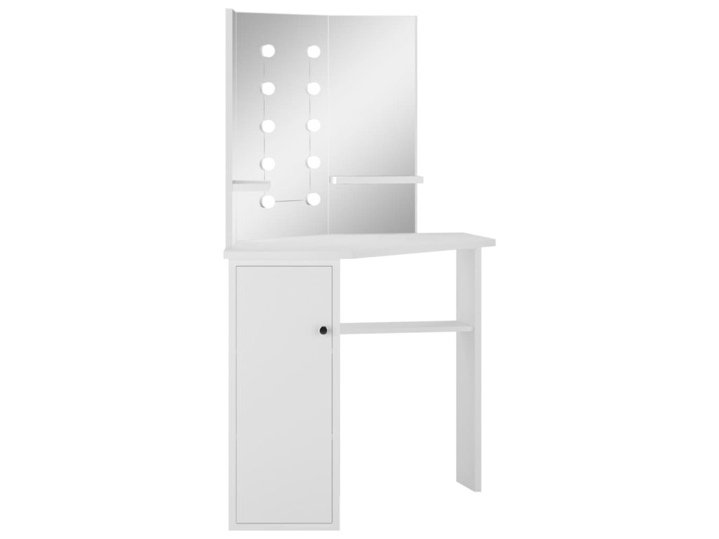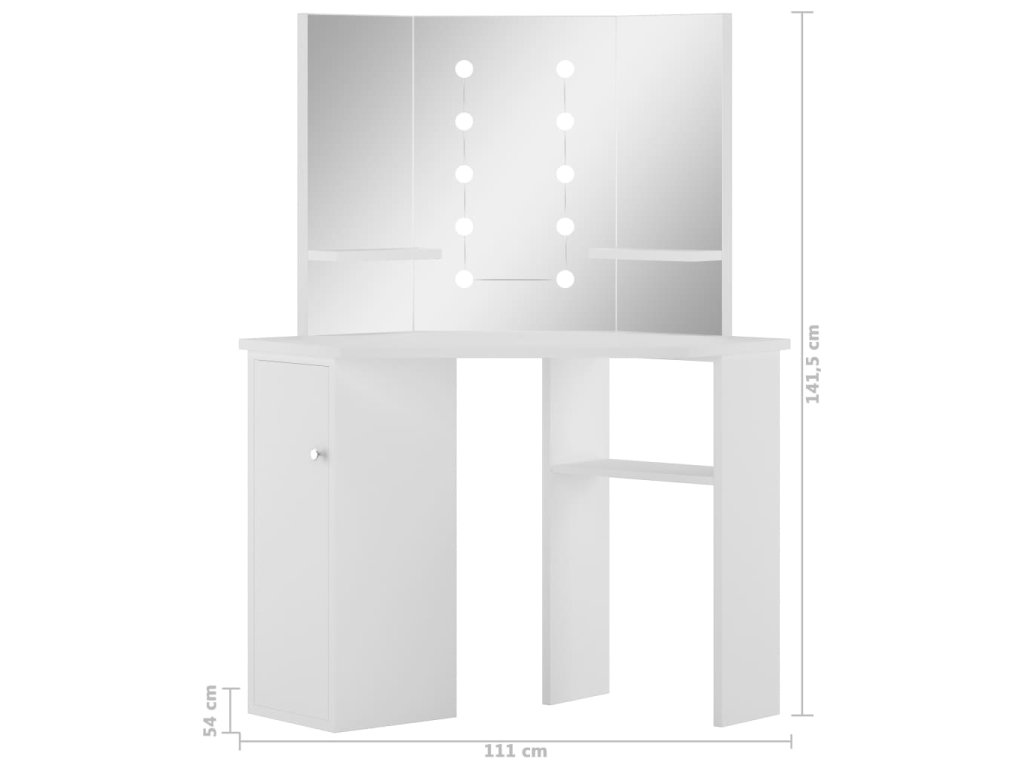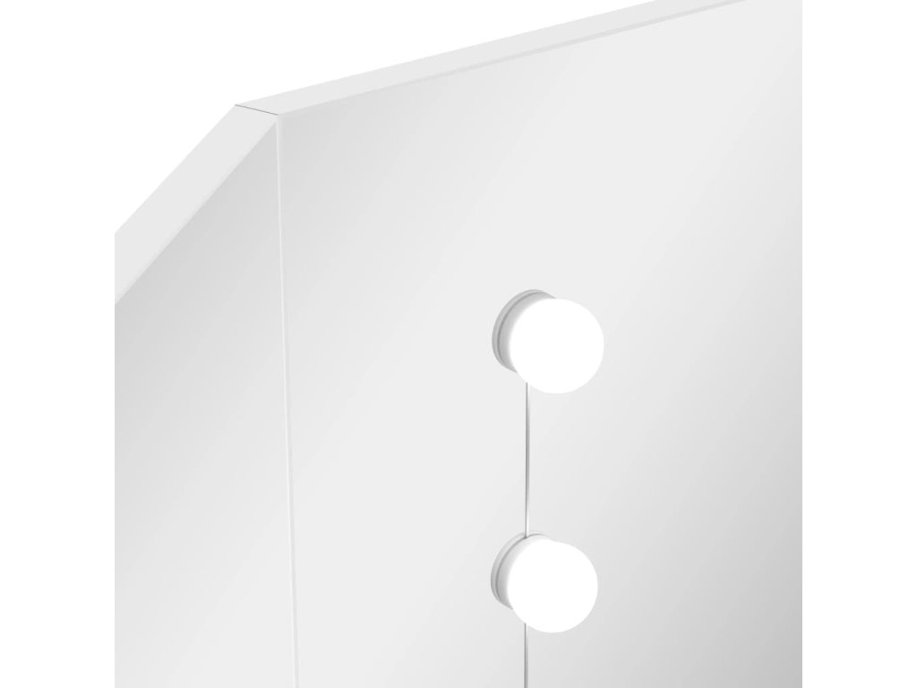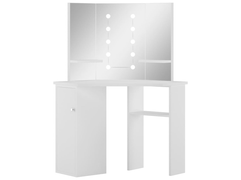 Multidom Rohový toaletný stolík make-up stolík s LED osvetlením biely