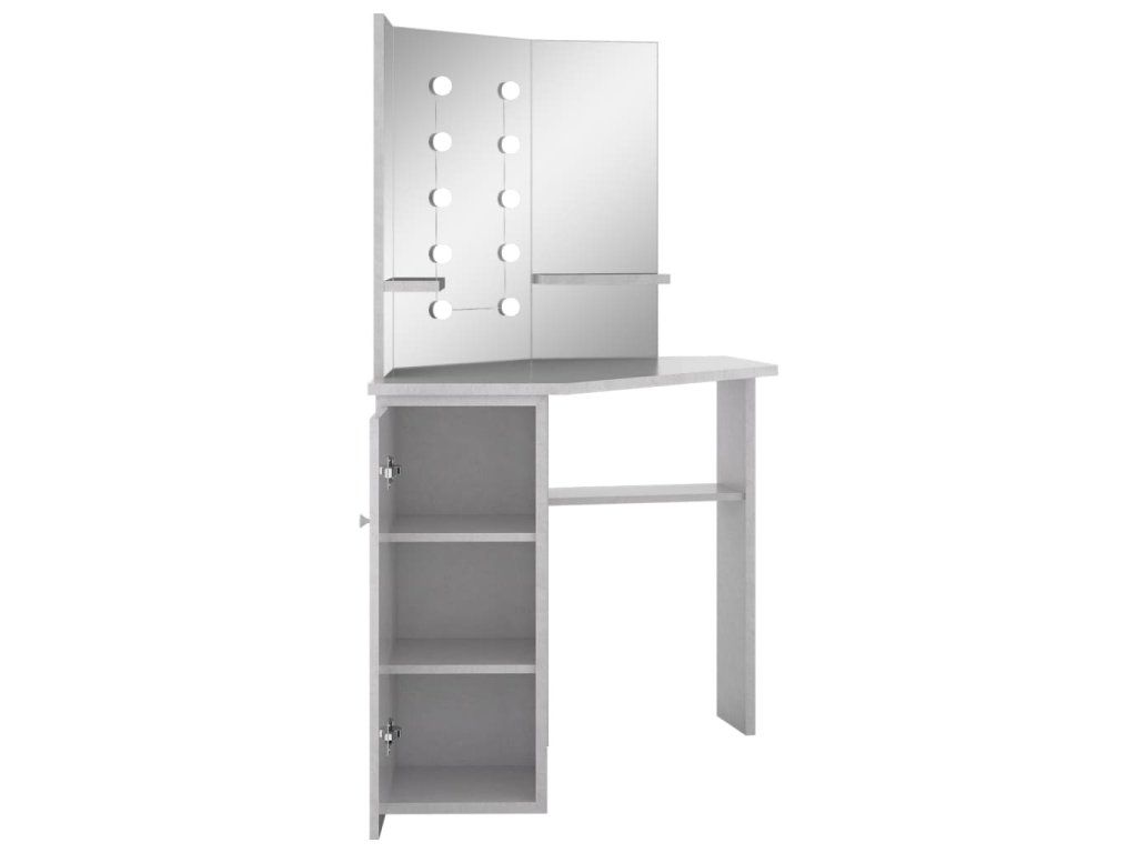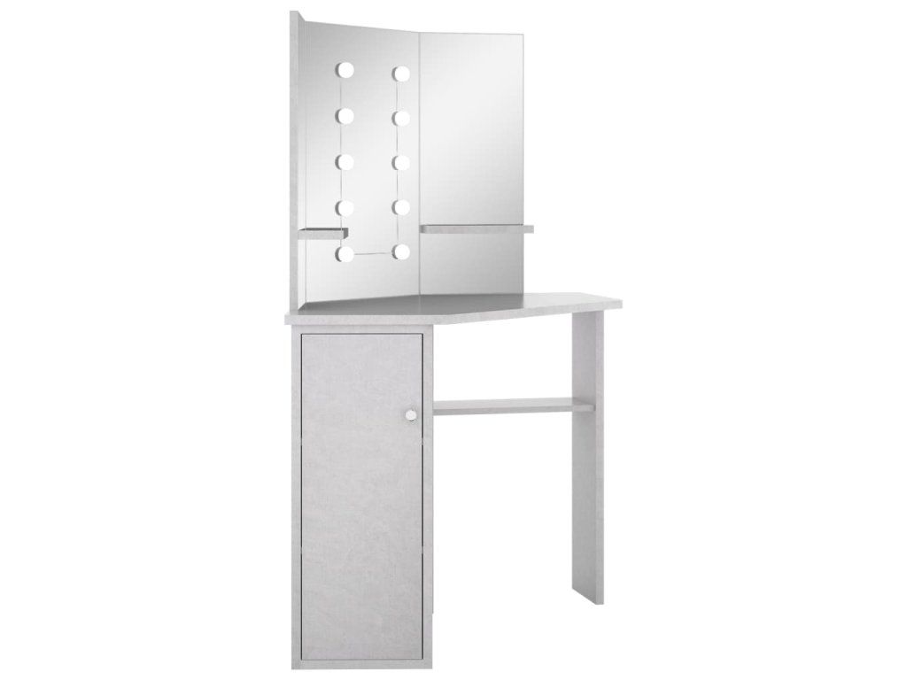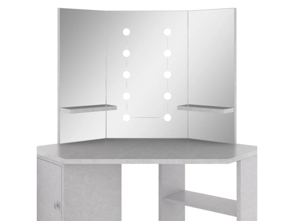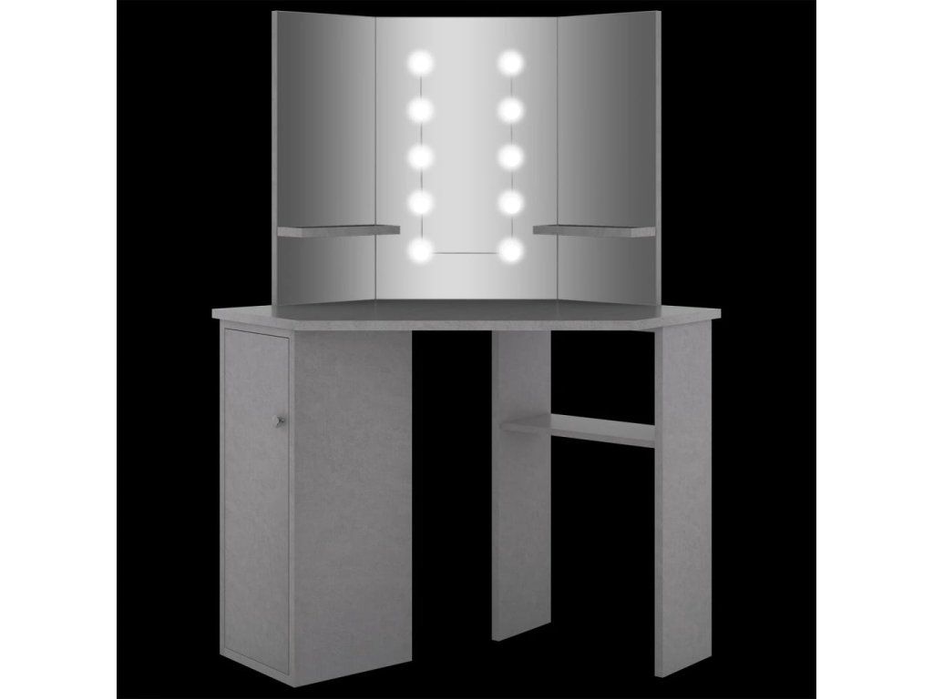 Multidom Rohový toaletný stolík s LED betónovosivý 111x54x141,5 cm