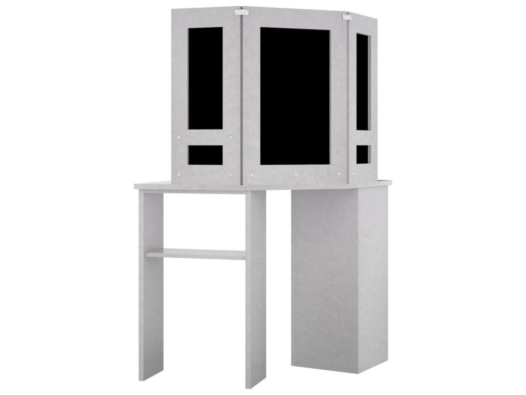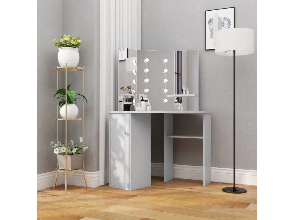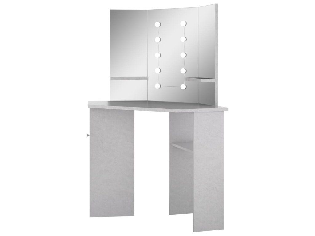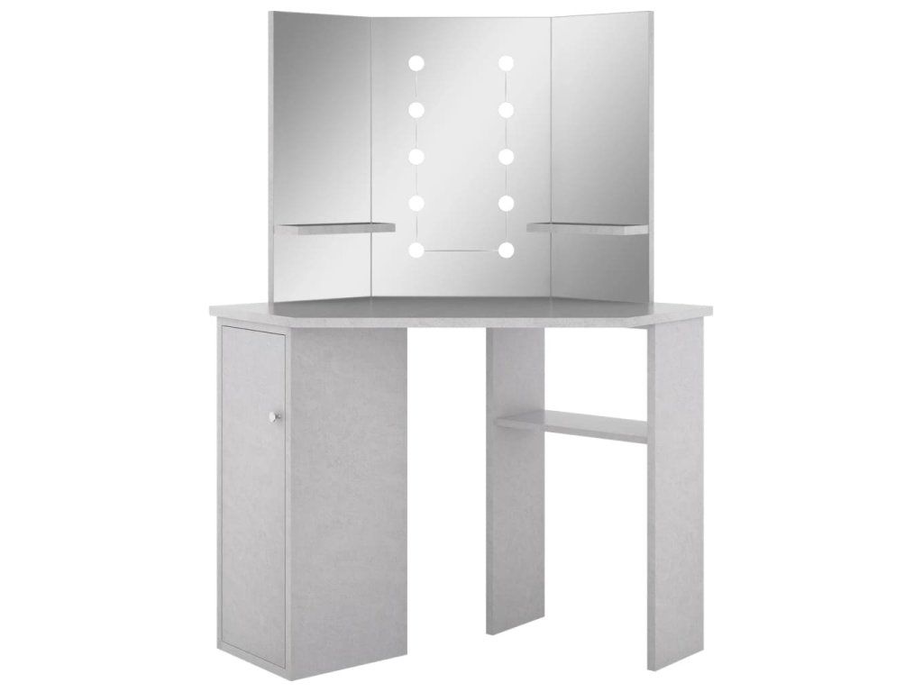 Multidom Rohový toaletný stolík s LED betónovosivý 111x54x141,5 cm