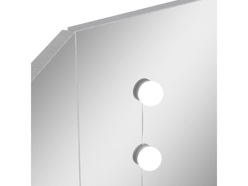 Tento toaletný stolík, vyrobený z kvalitného MDF, zaujme elegantnou siluetou a jednoduchými líniami v modernom štýle. Je navrhnutý tak, aby sa pohodlne vošiel do rohu a zároveň ponúkol na malom priestore veľa úložného priestoru. Priestranná skrinka a otvorená polica pod stolovou doskou slúži na prehľadné uloženie líčenia a kozmetiky, a keďže sa otvárajú do strán, máte k nim jednoduchý prístup aj keď sedíte pri stole. Krásne 3 panelové zrkadlo vás odráža z 3 strán pre pohodlnú aplikáciu make-upu a zároveň dodáva stolíku elegantný vzhľad. K dvom bočným panelom sú pridané spodné police na fľaštičky, štetce na líčenie, krémy, parfumy a dekoratívne predmety. Elegantné LED diódy vám poskytnú optimálne osvetlenie.