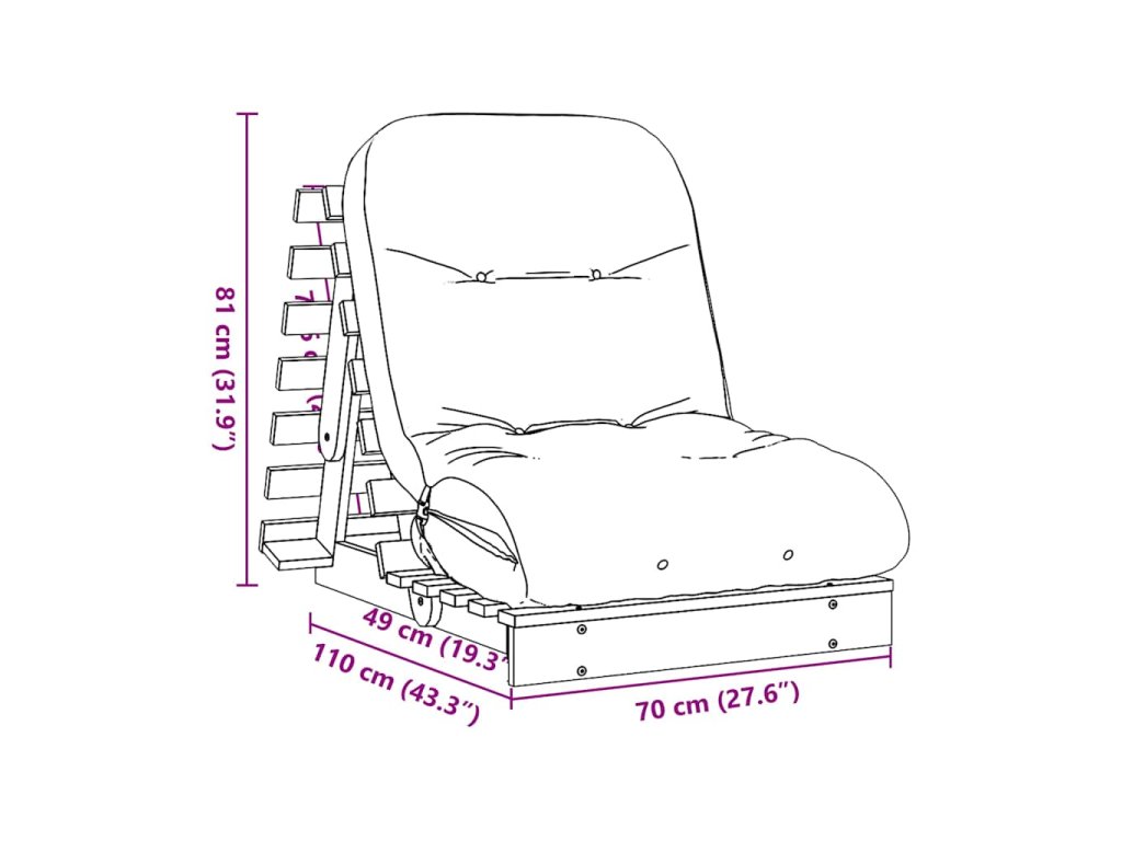 Multidom Rozkl.futonová pohovka matrac voskovohnedá 70x206x11cm borovica