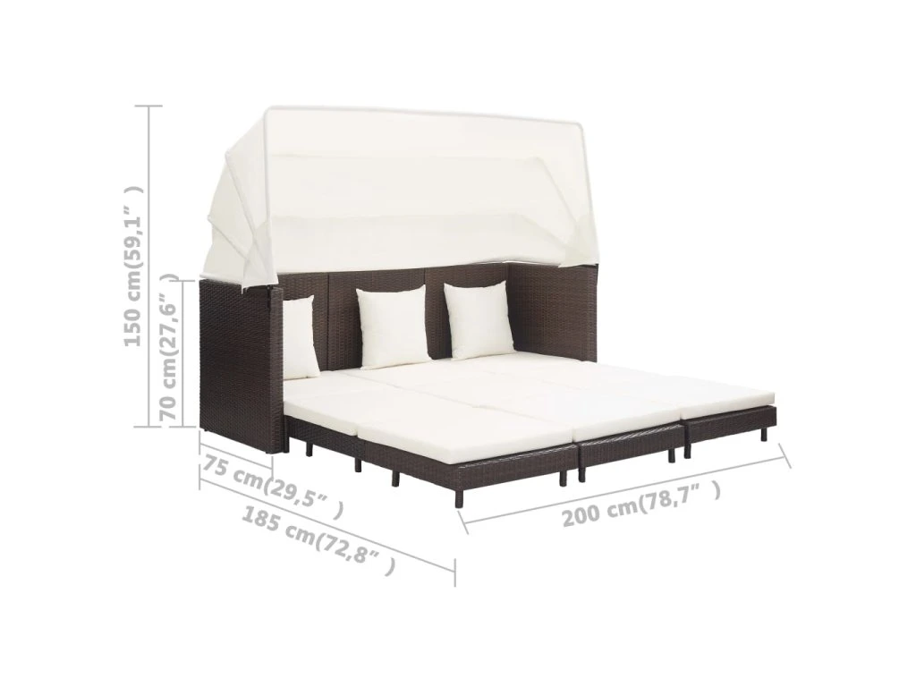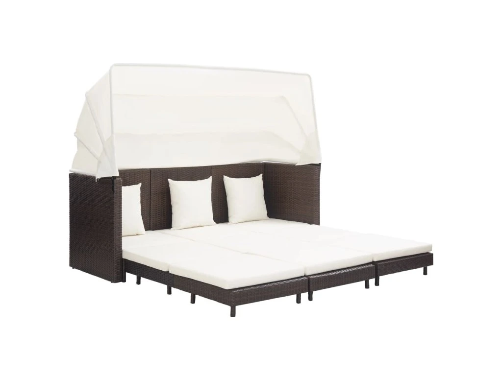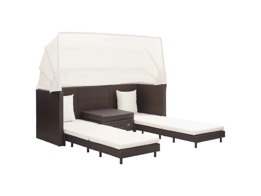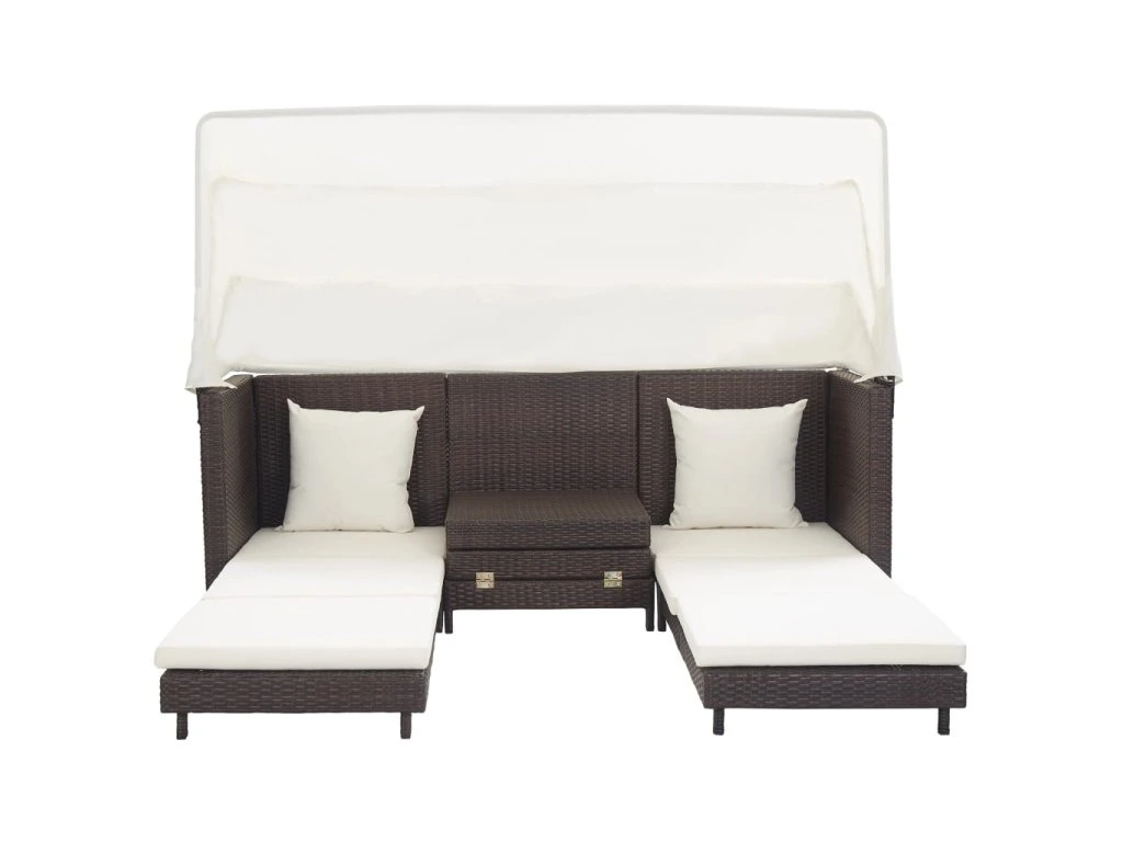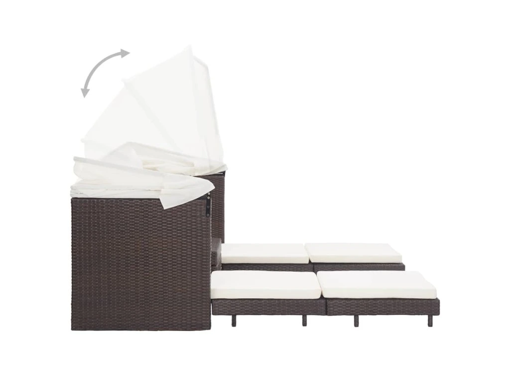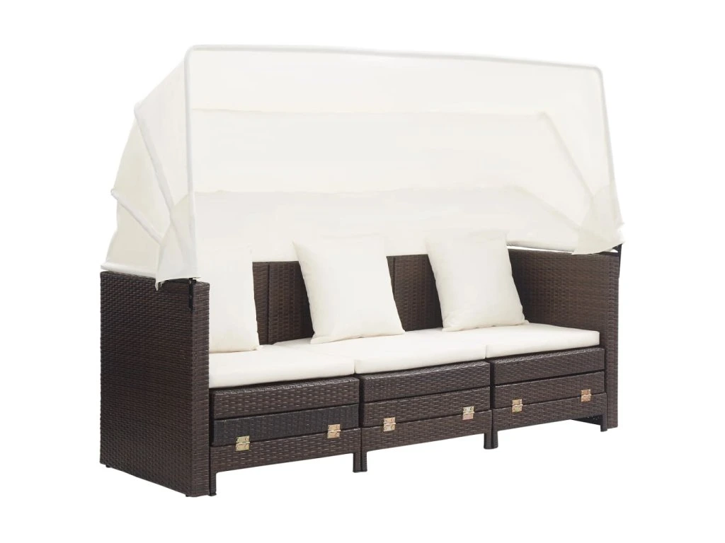 Multidom Rozkladacia 3-miestna pohovka so strechou polyratanová hnedá