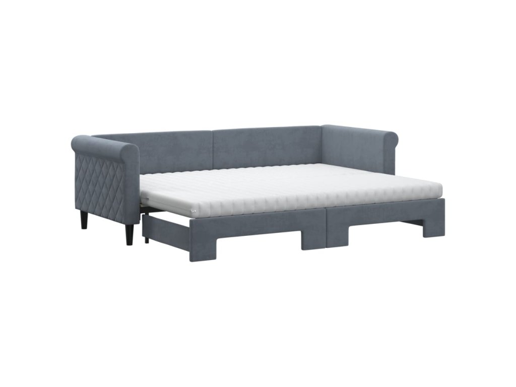 Multidom Rozkladacia denná posteľ s matracmi tmavosivá 80x200 cm zamat