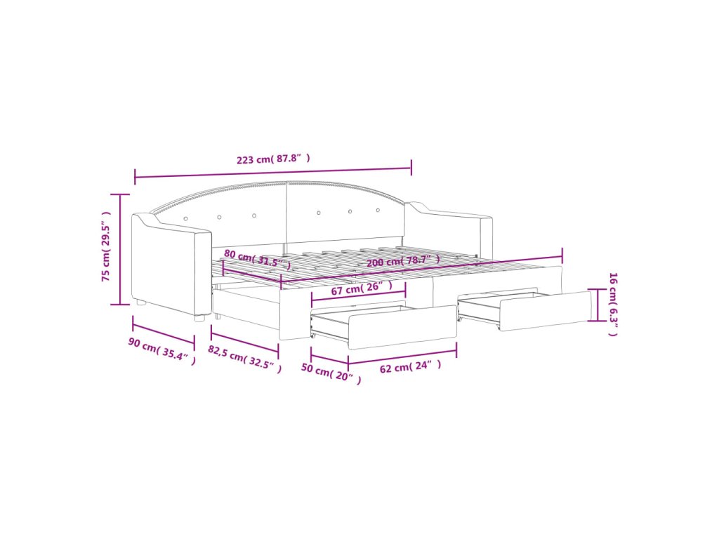 Multidom Rozkladacia denná posteľ so zásuvkami bledosivá 80x200 cm látka