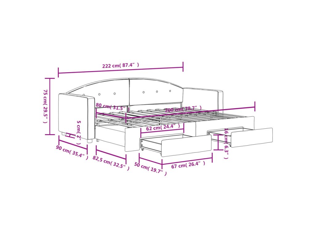 Táto denná posteľ 2 v 1 s rozkladacou posteľou a zásuvkami, ktorá slúži ako pohovka aj posteľ, bude praktickým a pútavým doplnkom vašej obývačky alebo spálne.