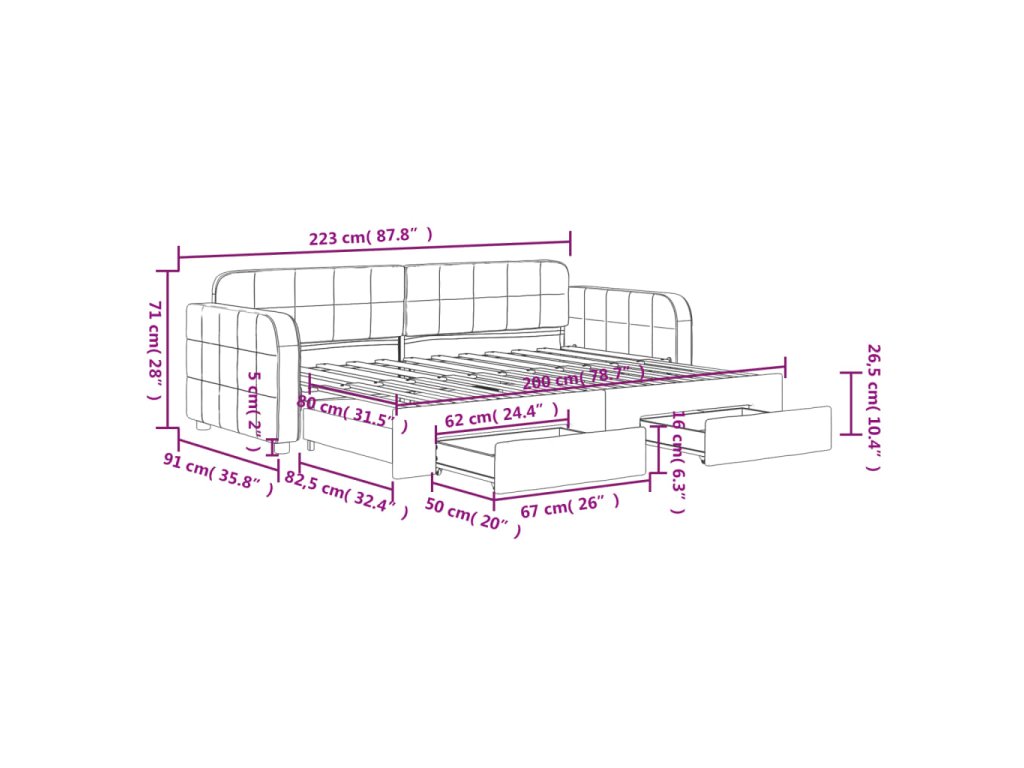 Táto denná posteľ 2 v 1 s rozkladacou posteľou, ktorá slúži ako pohovka aj posteľ, bude praktickým a pútavým doplnkom vašej obývačky alebo spálne.
