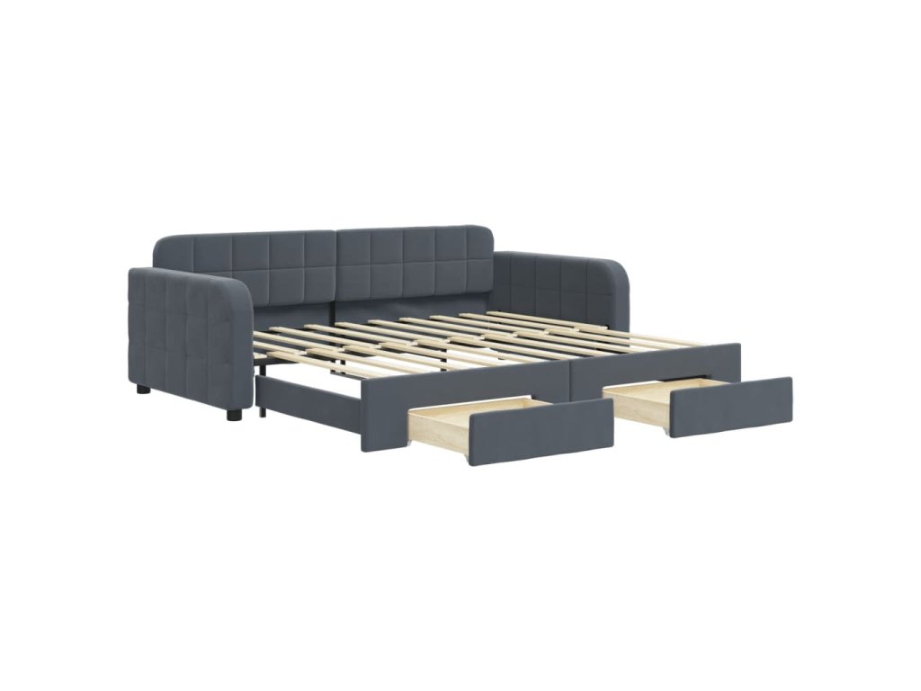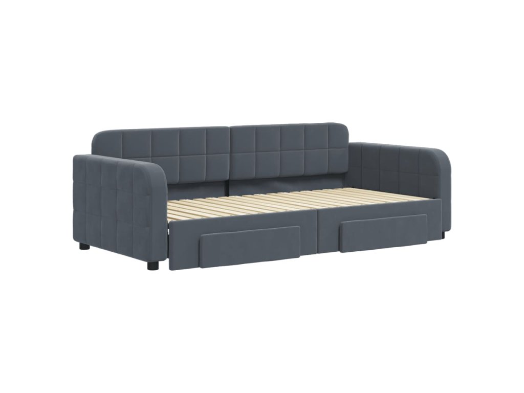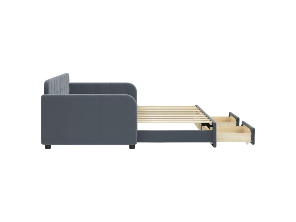Multidom Rozkladacia denná posteľ so zásuvkami tmavosivá 90x190 cm zamat