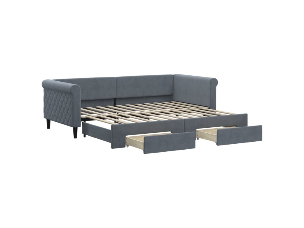 Multidom Rozkladacia denná posteľ so zásuvkami tmavosivá 90x200 cm zamat