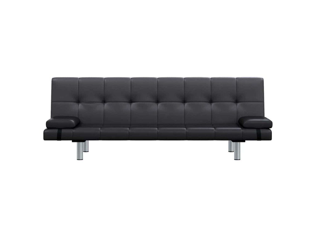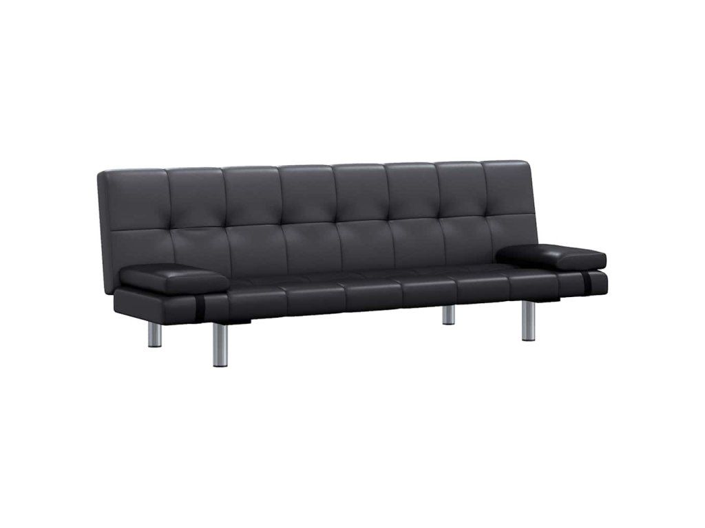 Multidom Rozkladacia pohovka, 2 vankúše, umelá koža, nastaviteľná,čierna