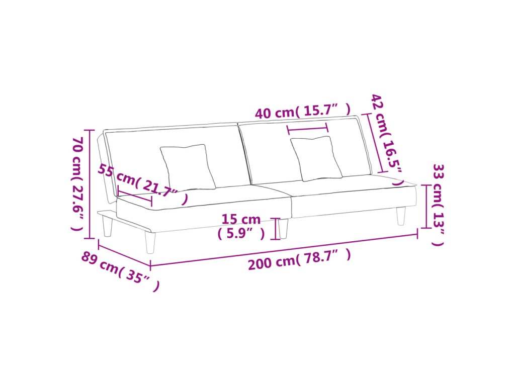 - Celkové rozmery (bez roztiahnutia): 200 x 89 x 70 cm (Š x H x V)