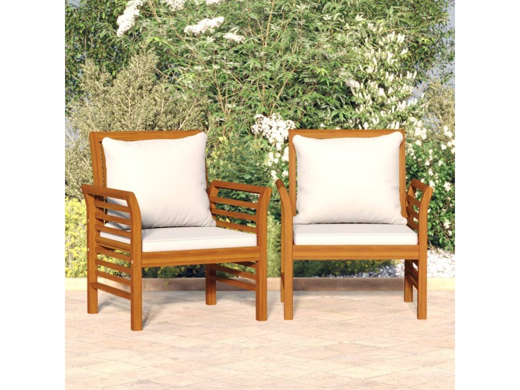 Multidom Rozkladacie kreslá a krémovo biele vankúše 2 ks akáciový masív