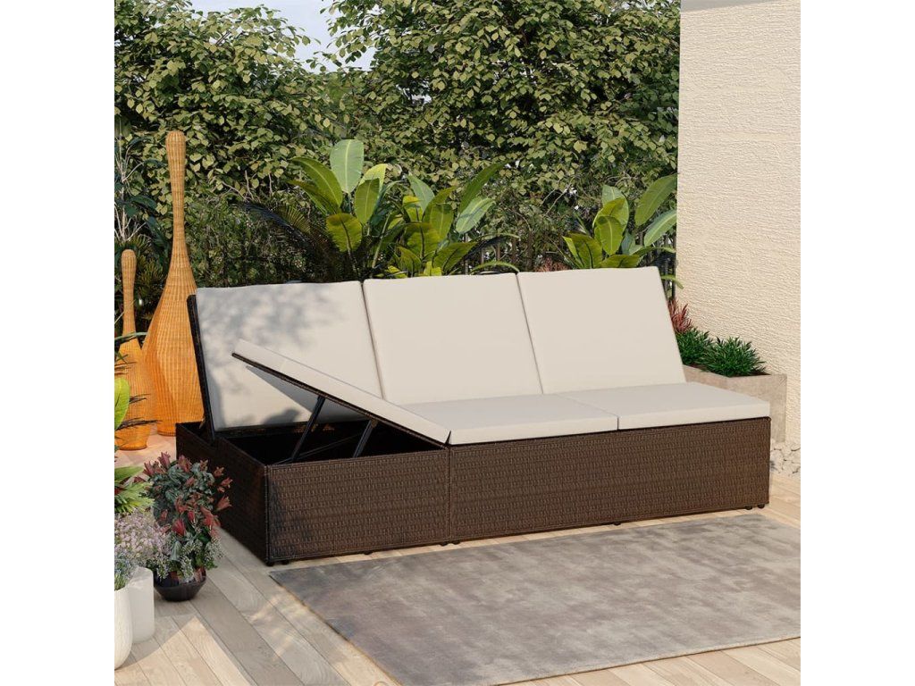 Multidom Rozkladacie záhradné ležadlo s podložkou hnedé polyratanové