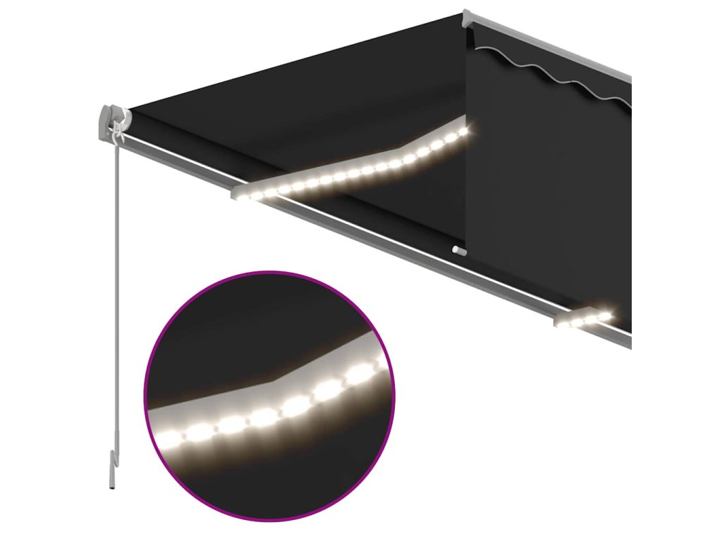 Multidom Ručne zaťahovacia markíza s tienidlom&LED 3,5x2,5 m antracitová