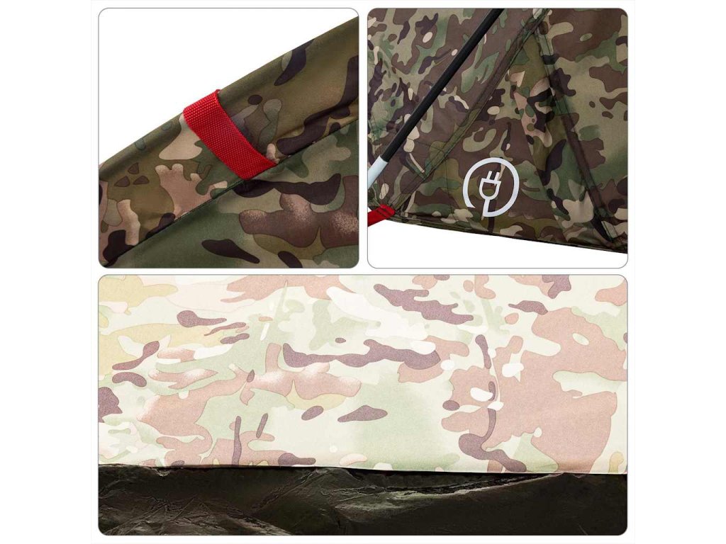 - Vodotesný dizajn: Tento kempingový stan je vyrobený z polyesteru s PU vrstvou, takže je vodeodolný a odolný voči vetru. Podlepené švy účinne zabraňujú prenikaniu dažďovej vody, zatiaľ čo odolná podlážka pomáha udržiavať interiér suchý a pohodlný.