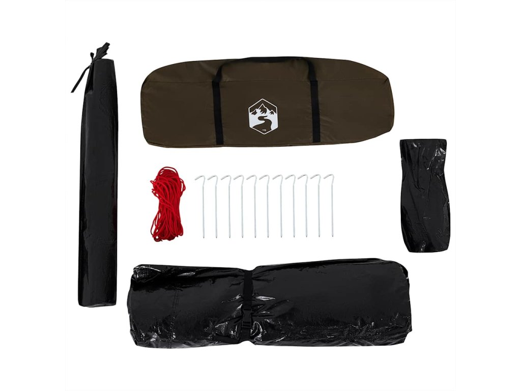 - Vodotesný dizajn: Tento kempingový stan je vyrobený z polyesteru s PU vrstvou, takže je vodeodolný a odolný voči vetru. Podlepené švy účinne zabraňujú prenikaniu dažďovej vody, zatiaľ čo odolná podlážka pomáha udržiavať interiér suchý a pohodlný.