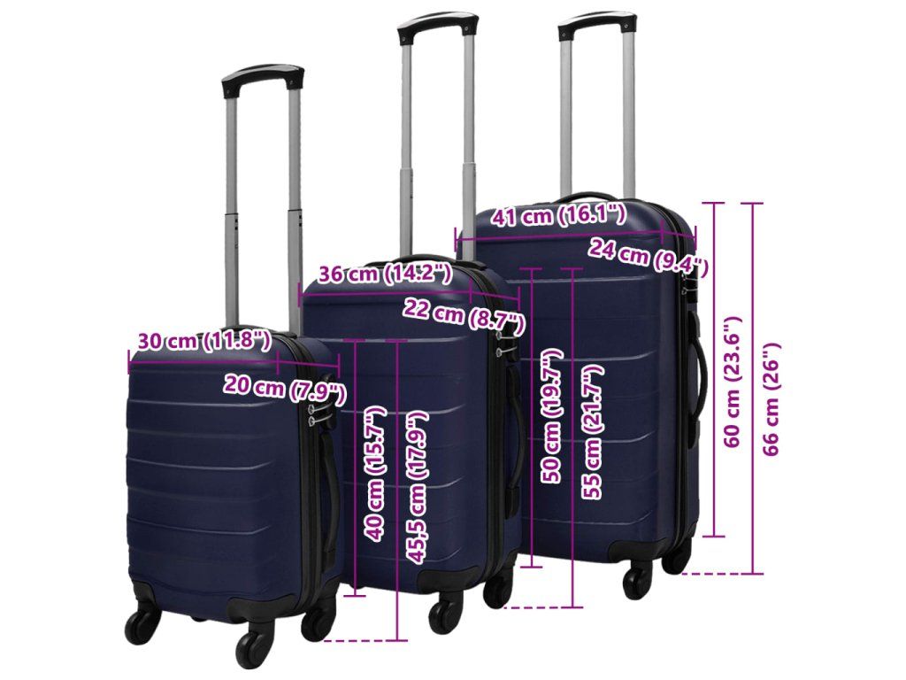 Multidom Sada 3 škrupinových kufrov s kolieskami, modrá 45,5/55/66 cm